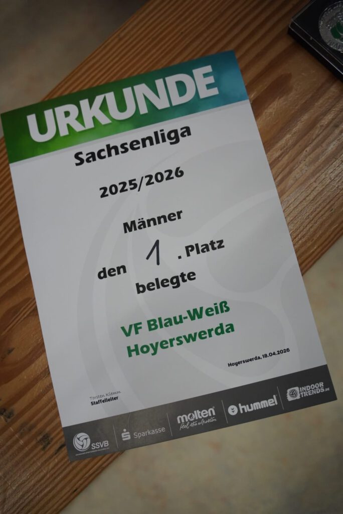 Als am vergangenen Samstag um 18:03 Uhr die letzten beiden Spiele der Sachsenligasaison 2025/2026 beendet waren, erfolgte die feierliche Übergabe der Meisterschale und damit die Ehrung des besten Teams dieser Spielrunde. Bereits zuvor hatte der designierte Meister seinen Fans und den Gastmannschaften einen herzlichen und grandiosen Empfang bereitet und dank der Hilfe vieler Beteiligter einen würdigen Rahmen für diesen historischen Abschluss vorbereitet.