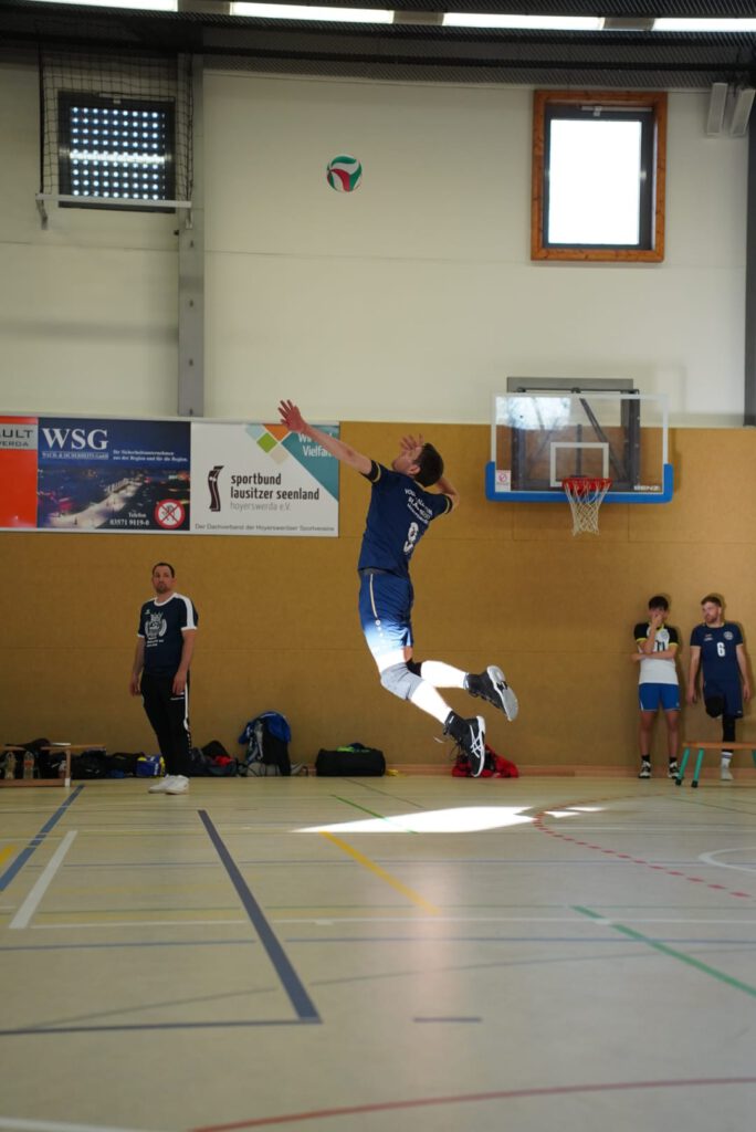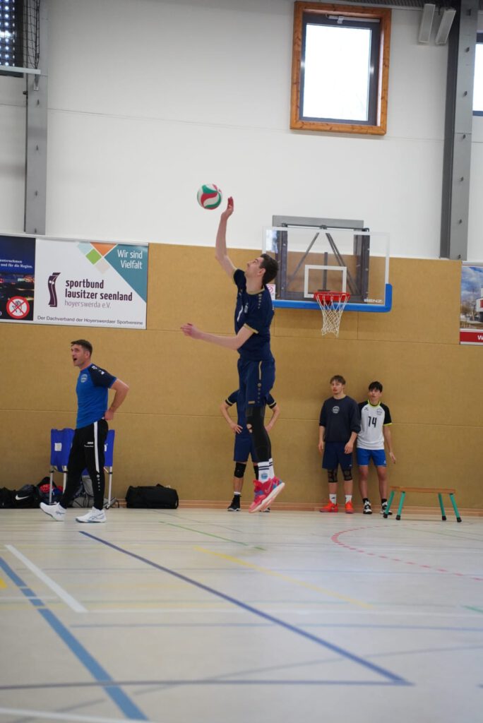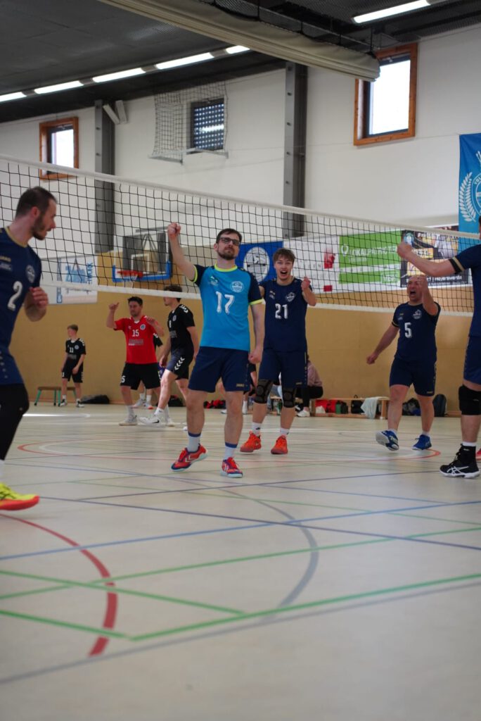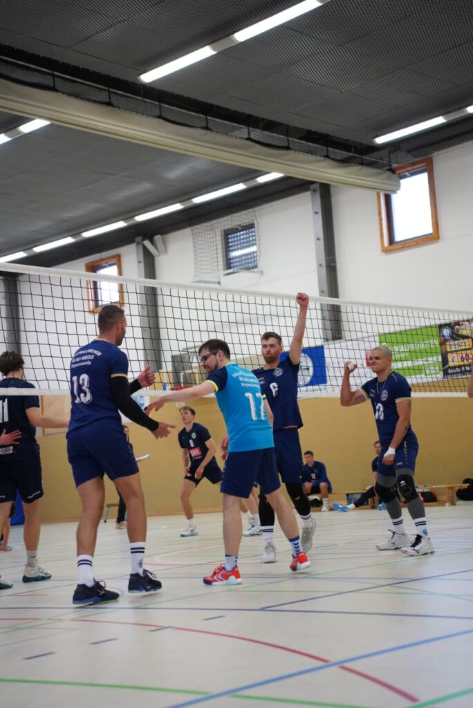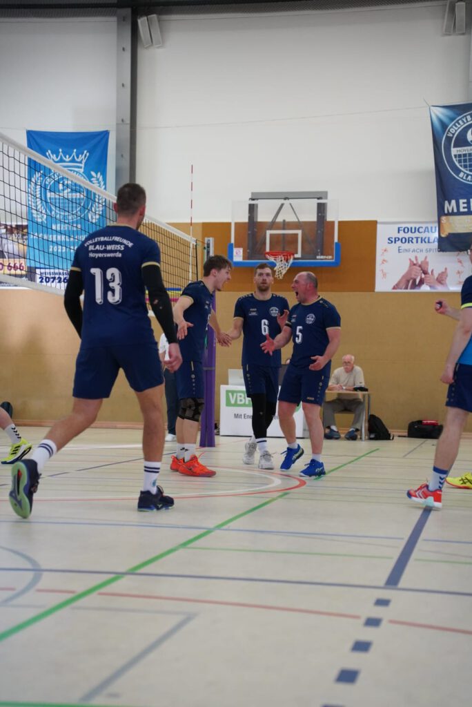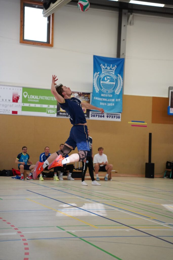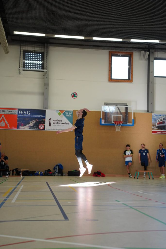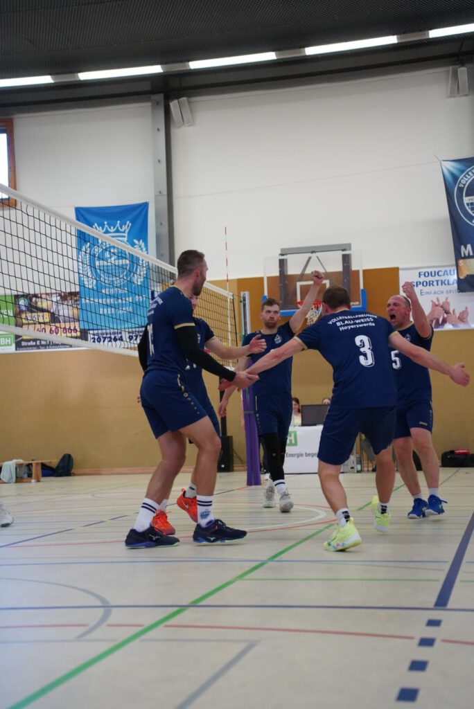 Bei bestem Frühlingswetter und vom Verein gestiftetem Freibier durften die 220 Zuschauer, darunter viele ehemalige Wegbegleiter, den neuen Regionalligisten noch einmal in Aktion erleben. Mit den drei bestplatzierten Teams in der Tabelle war auch qualitativ ein Topspieltag garantiert. Und die Zuschauer wurden nicht enttäuscht. In einem über weite Strecke hochklassigem Duell setzten sich die Volleyballfreunde verdient mit 3:1 (-15, 22-, -19, -18) gegen die Neuseenland-Volleys Markleeberg durch.