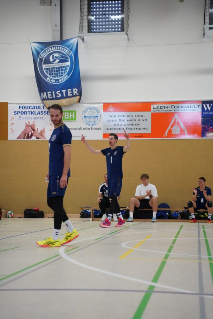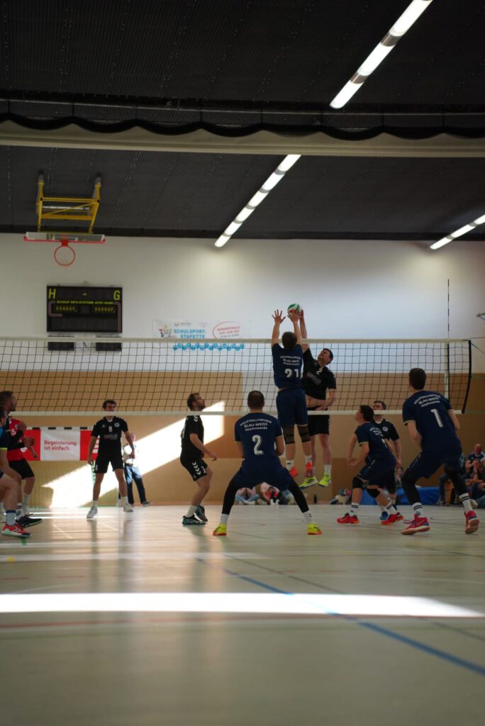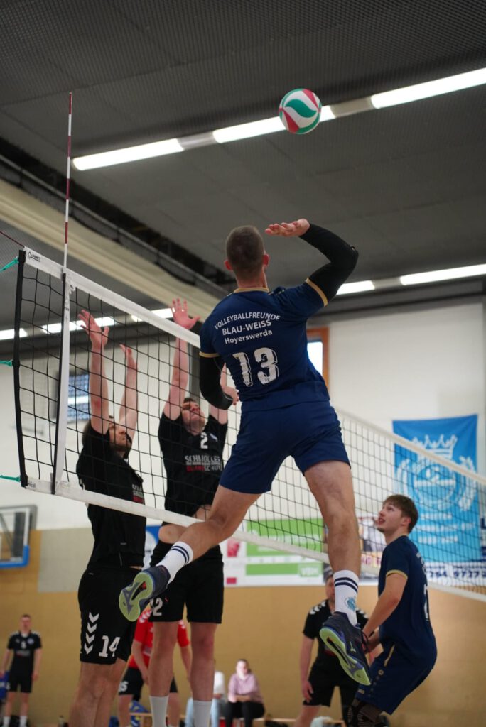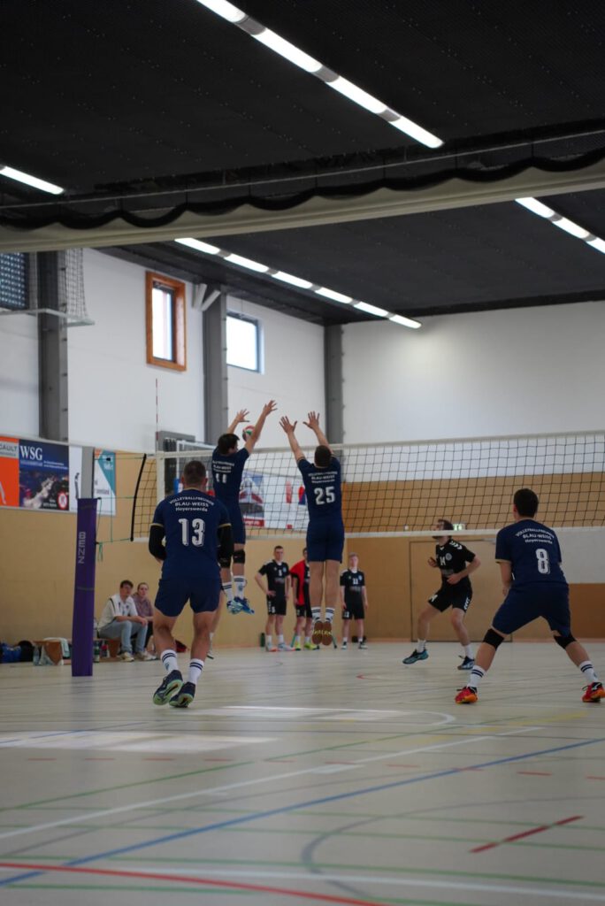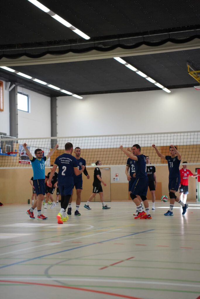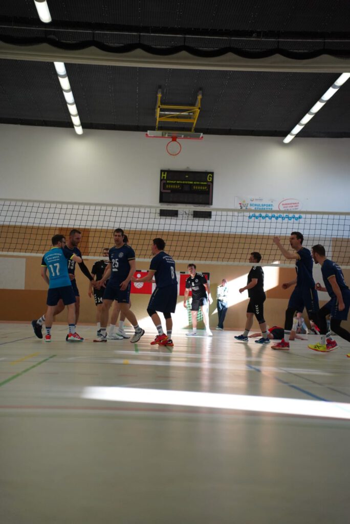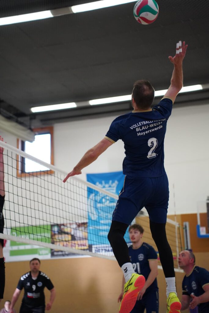 Bei bestem Frühlingswetter und vom Verein gestiftetem Freibier durften die 220 Zuschauer, darunter viele ehemalige Wegbegleiter, den neuen Regionalligisten noch einmal in Aktion erleben. Mit den drei bestplatzierten Teams in der Tabelle war auch qualitativ ein Topspieltag garantiert. Und die Zuschauer wurden nicht enttäuscht. In einem über weite Strecke hochklassigem Duell setzten sich die Volleyballfreunde verdient mit 3:1 (-15, 22-, -19, -18) gegen die Neuseenland-Volleys Markleeberg durch.
