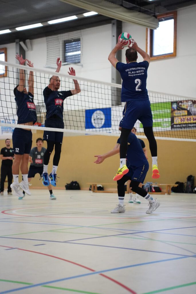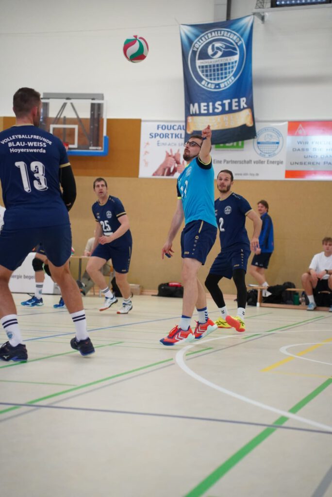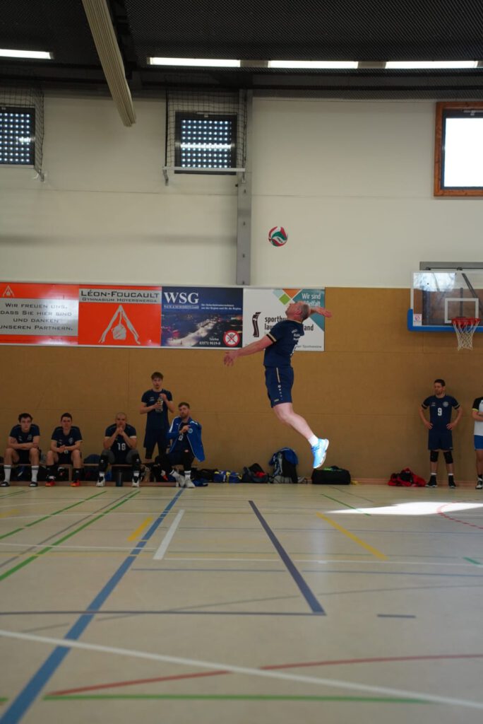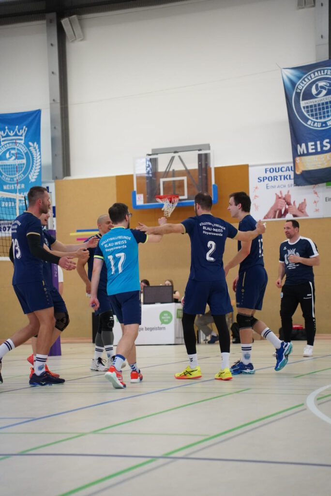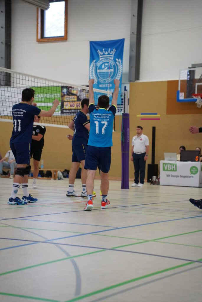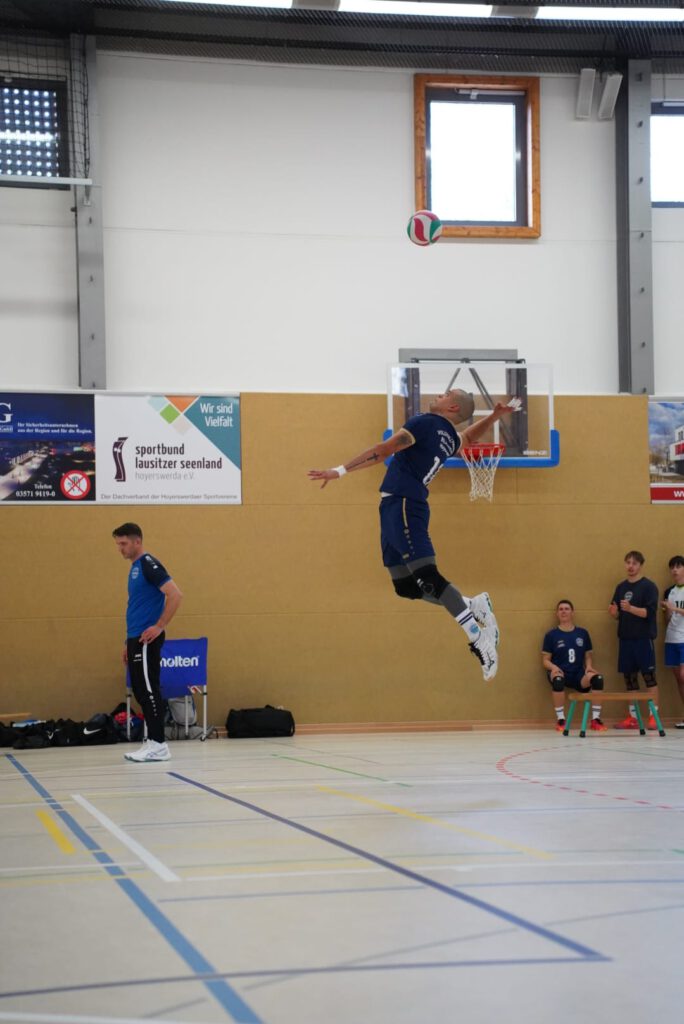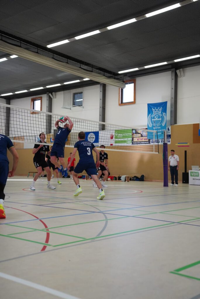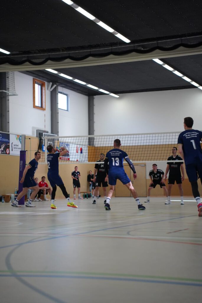 Bei bestem Frühlingswetter und vom Verein gestiftetem Freibier durften die 220 Zuschauer, darunter viele ehemalige Wegbegleiter, den neuen Regionalligisten noch einmal in Aktion erleben. Mit den drei bestplatzierten Teams in der Tabelle war auch qualitativ ein Topspieltag garantiert. Und die Zuschauer wurden nicht enttäuscht. In einem über weite Strecke hochklassigem Duell setzten sich die Volleyballfreunde verdient mit 3:1 (-15, 22-, -19, -18) gegen die Neuseenland-Volleys Markleeberg durch.