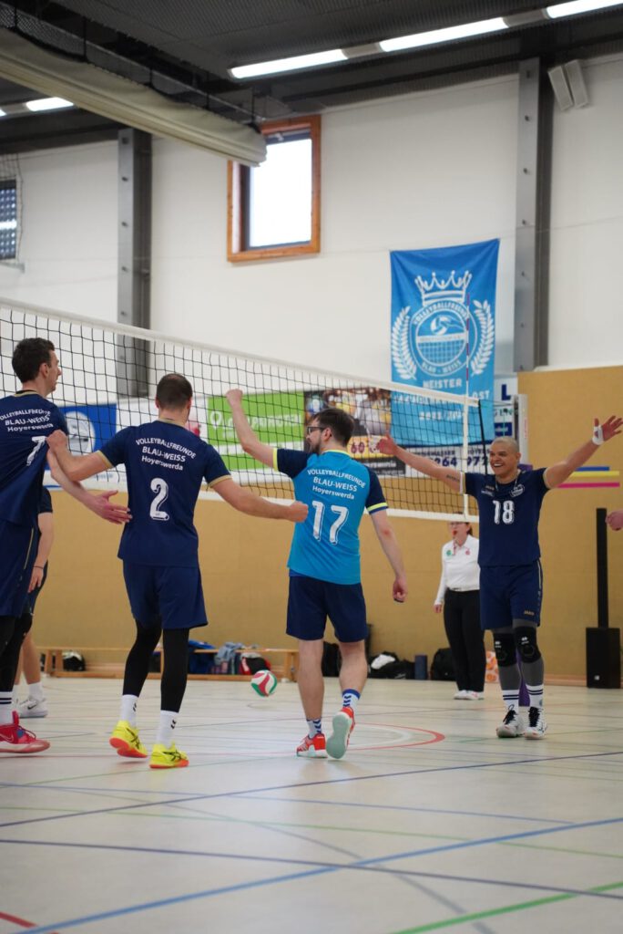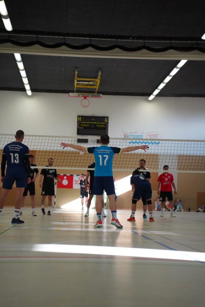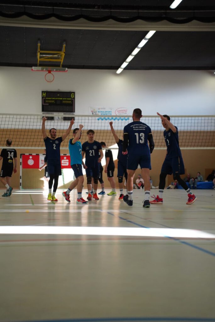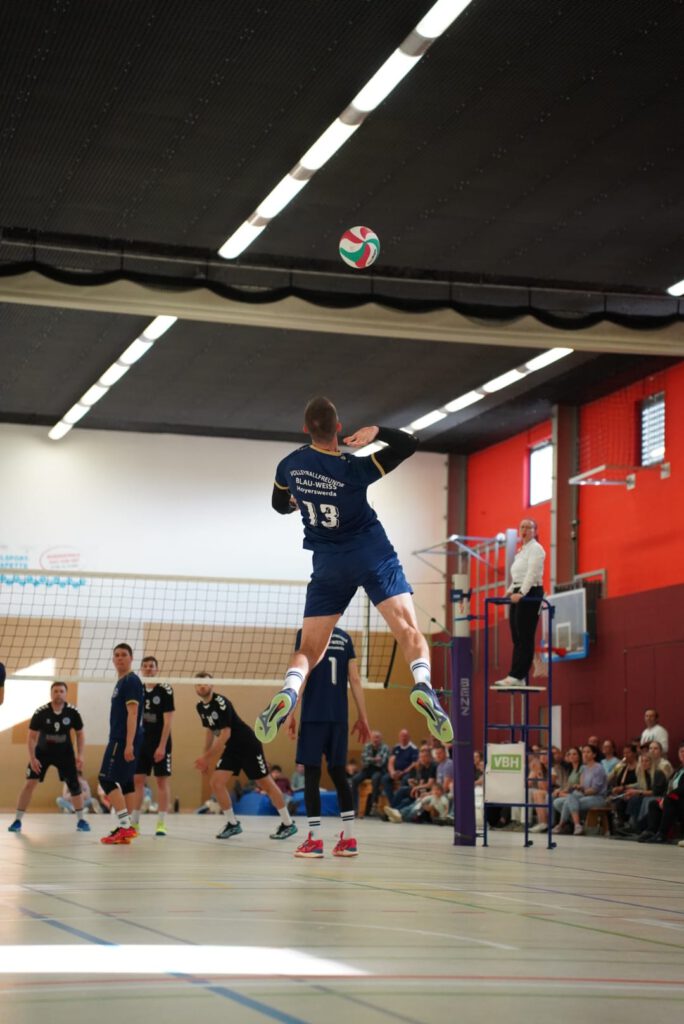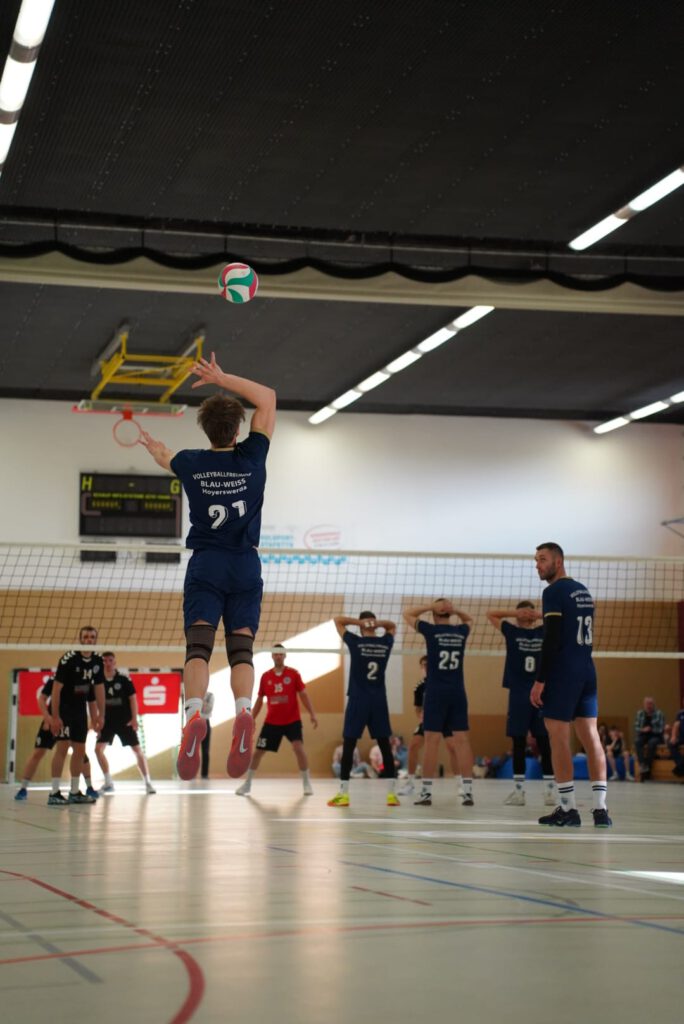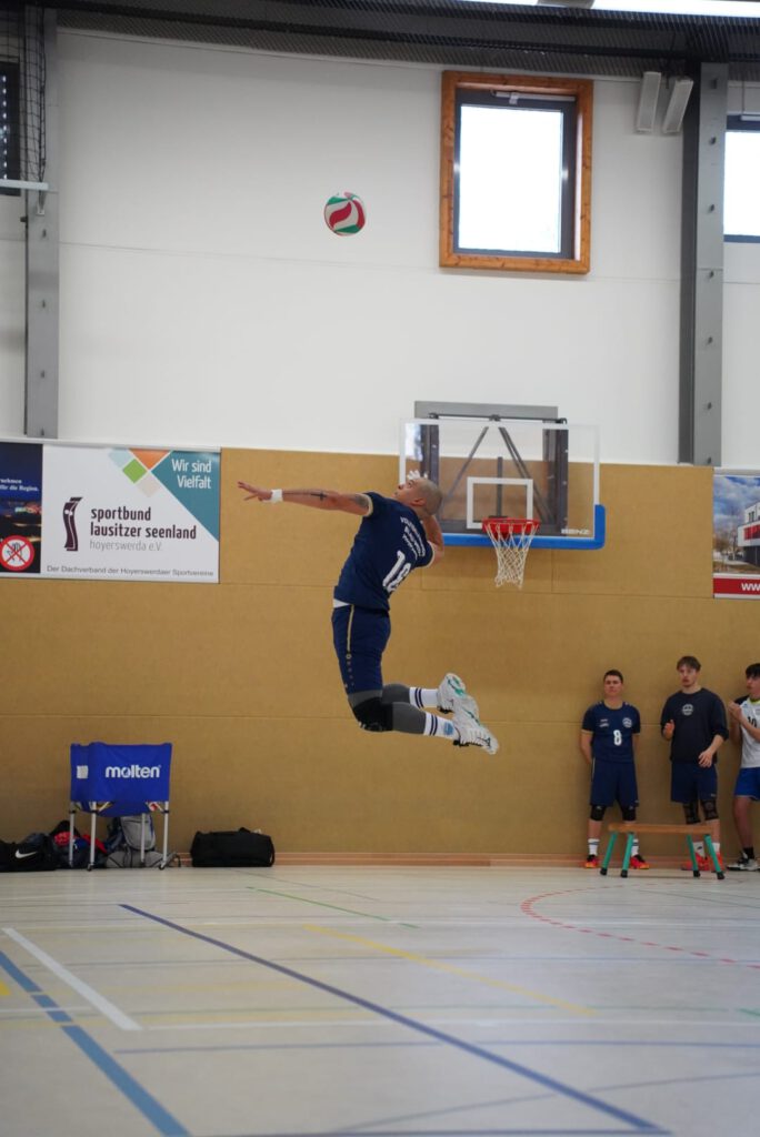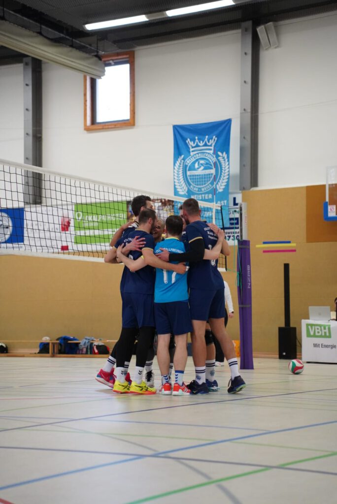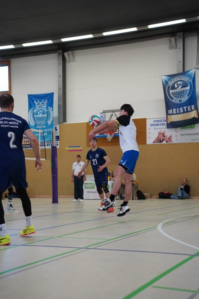 Bei bestem Frühlingswetter und vom Verein gestiftetem Freibier durften die 220 Zuschauer, darunter viele ehemalige Wegbegleiter, den neuen Regionalligisten noch einmal in Aktion erleben. Mit den drei bestplatzierten Teams in der Tabelle war auch qualitativ ein Topspieltag garantiert. Und die Zuschauer wurden nicht enttäuscht. In einem über weite Strecke hochklassigem Duell setzten sich die Volleyballfreunde verdient mit 3:1 (-15, 22-, -19, -18) gegen die Neuseenland-Volleys Markleeberg durch.